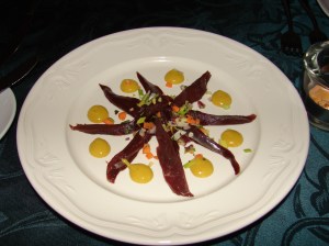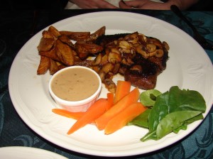 Food was also exciting for me. I couldn’t wait to try some traditional items that Iceland was known for. First was a piece of skyr cake. Skyr is a fat-free soft cheese substance with an added bacteria culture, so it has a yogurt tast to it. The skyr cake, however, was almost like a cheesecake, only very light and fluffy…and extremely delicious. Puffin was next, and yes, I mean those cute little birds. I had a smoked puffin appetizer. The puffin strips were a bit raw for my taste, but it was ok and I’m glad I tried it. My favorite Icelandic food item, however, was a delicious horse steak with potatoes, carrots, cooked mushrooms, and a creamy pepper sauce…simply mouthwatering.