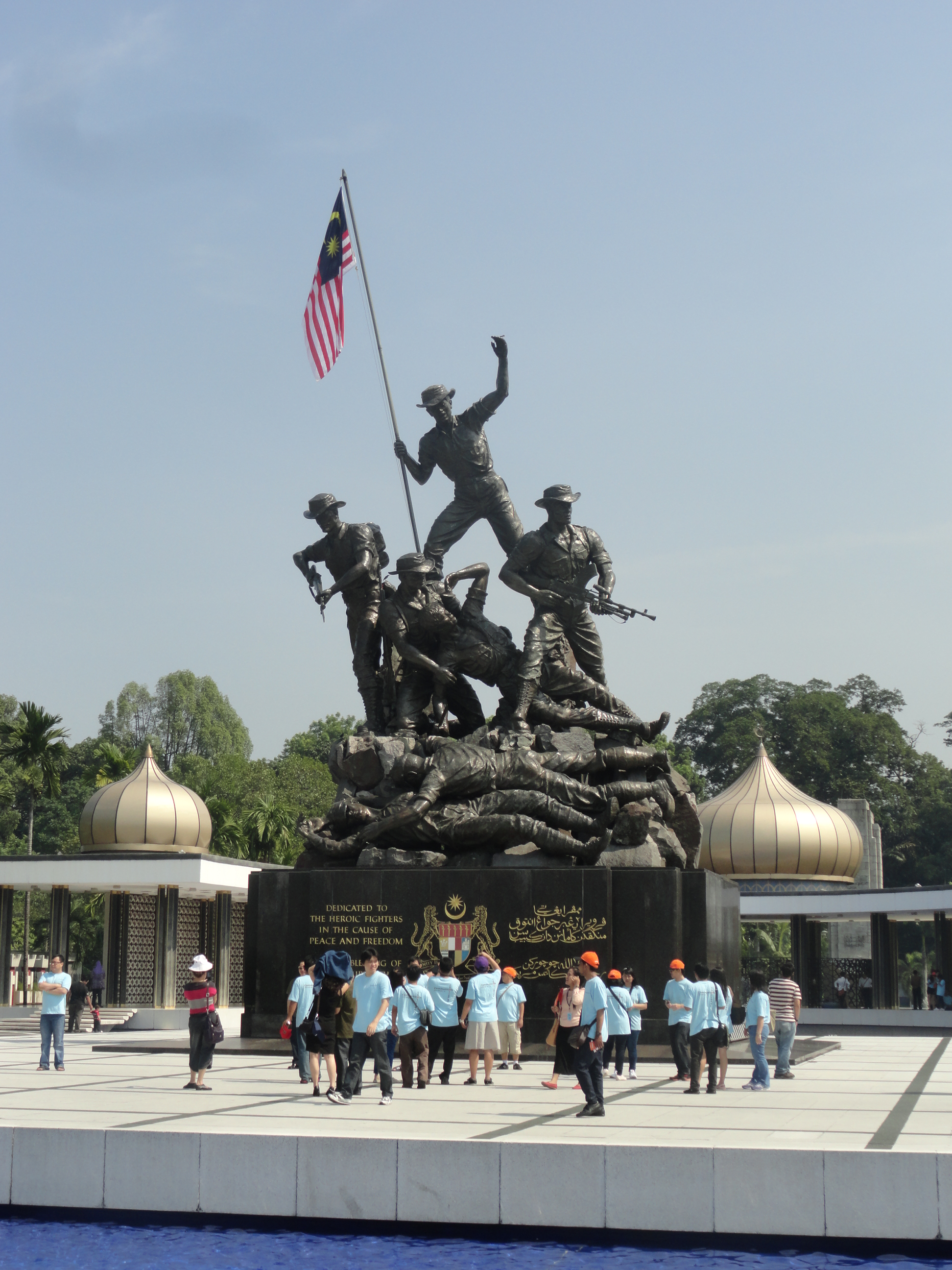 Then we were taken to one of the national monuments.  In essence, it’s a replica of a war memorial in Washington, DC.  The same artist that created the monument in America created the one in Kuala Lumpur, but the faces and headwear are in Malay style.  Very beautiful area.