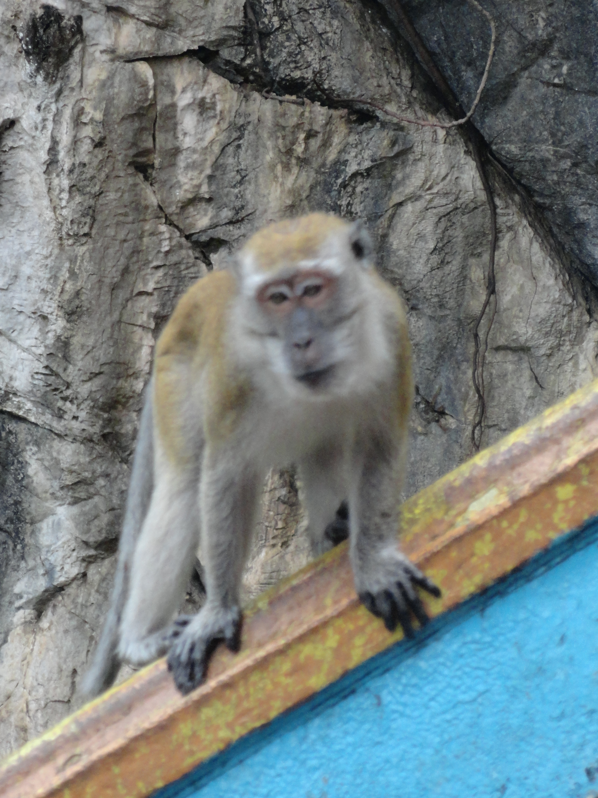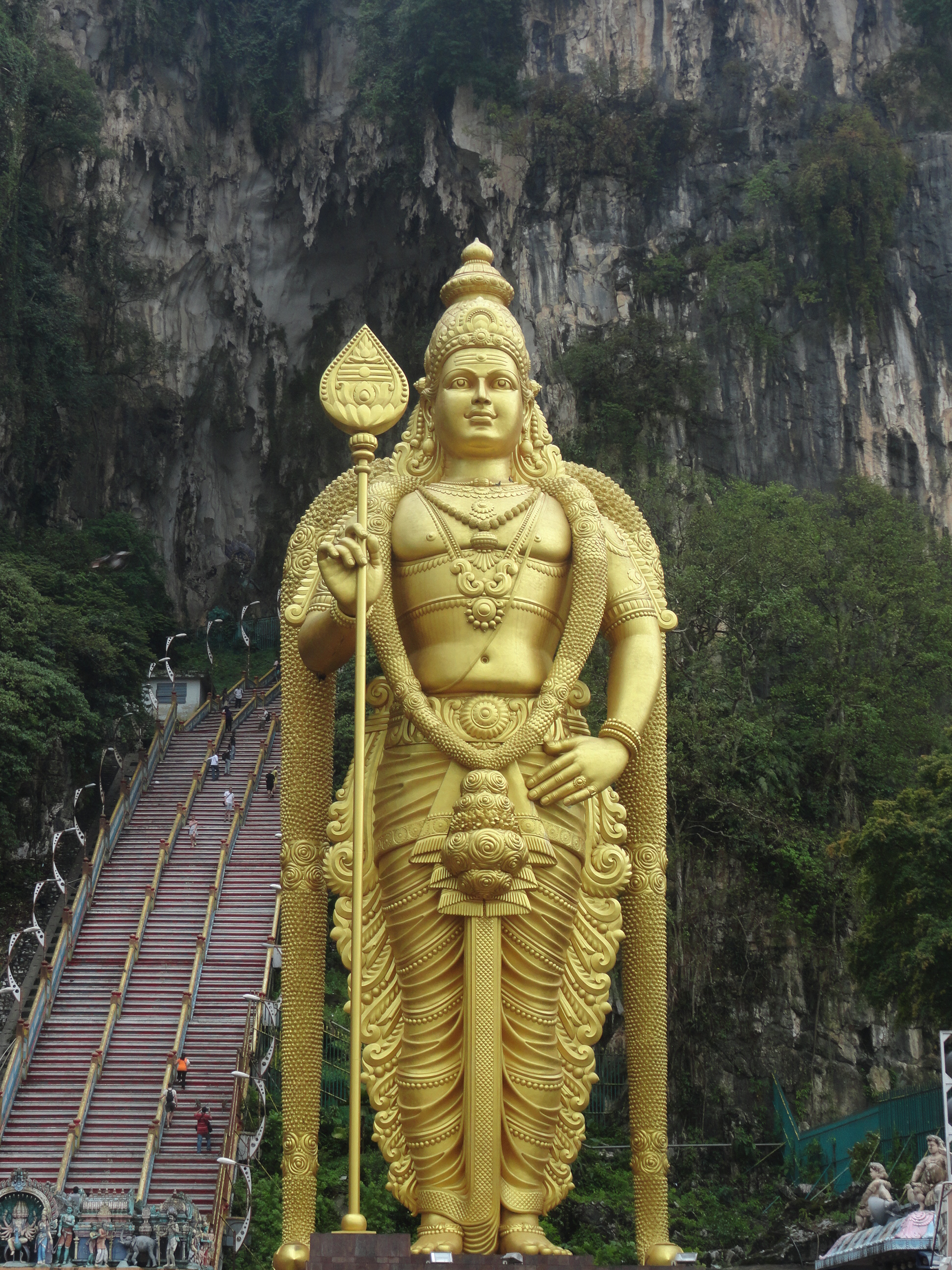No sooner did we get back to the guesthouse, that we met up with our afternoon tour.  Once again I was in a van, moving down the highway to a new part of the city.  We made a quick stop in “Brickfields,” also known as Little India, to appreciate the culture and colors of this homogenous area.  Then is was on Batu Cave, with its imposing Hindu statue greeting patrons as they begin the almost 300-step ascension.  Wild monkeys looking for sweet snacks eagerly accompany guests to the top, but respectfully refrain from pestering those who continue on to explore the Hindu temple area inside.