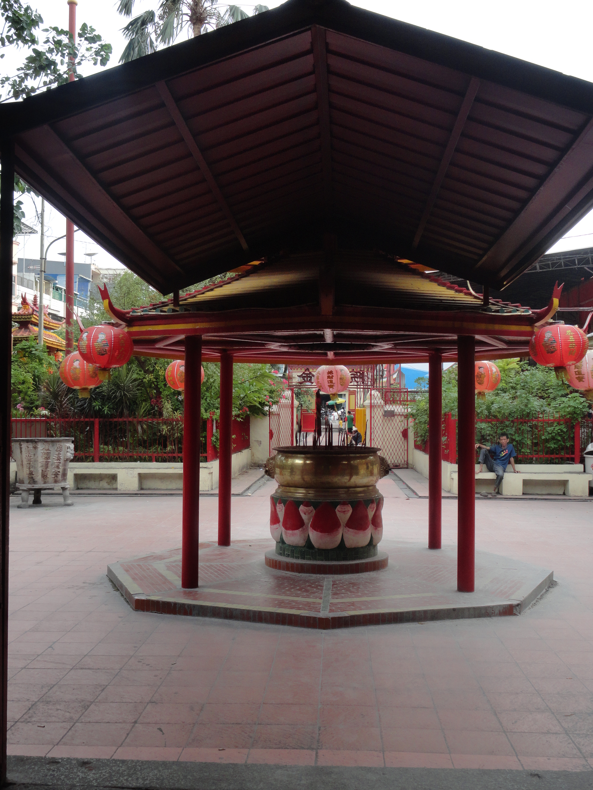 With a very happy belly, it was time to walk around. Passing through a tourist trap shopping area and across the street, led to the beginning of Chinatown. Though not a very big area, there were so many shops, fabrics and food supplies available in those narrow alleyways. After a few minutes, the alleyway brought me to a beautiful temple. The unmistakable gate and aroma of incense drew me in and held me tight for a short spell.
