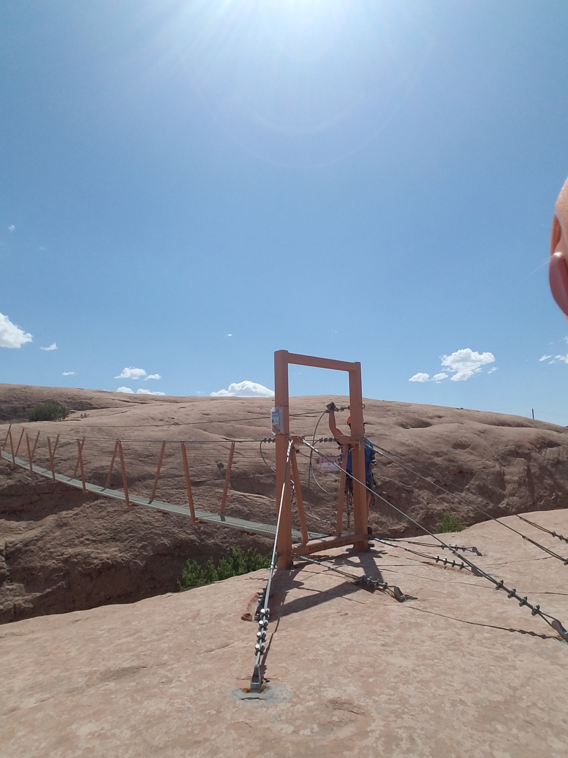 Once at the top of the rocks, the lines extended out over huge cliffs and valleys. Of the six lines, two of them ran for over a quarter-mile, and in the middle of the trek, we had to cross a very flexible swinging bridge.