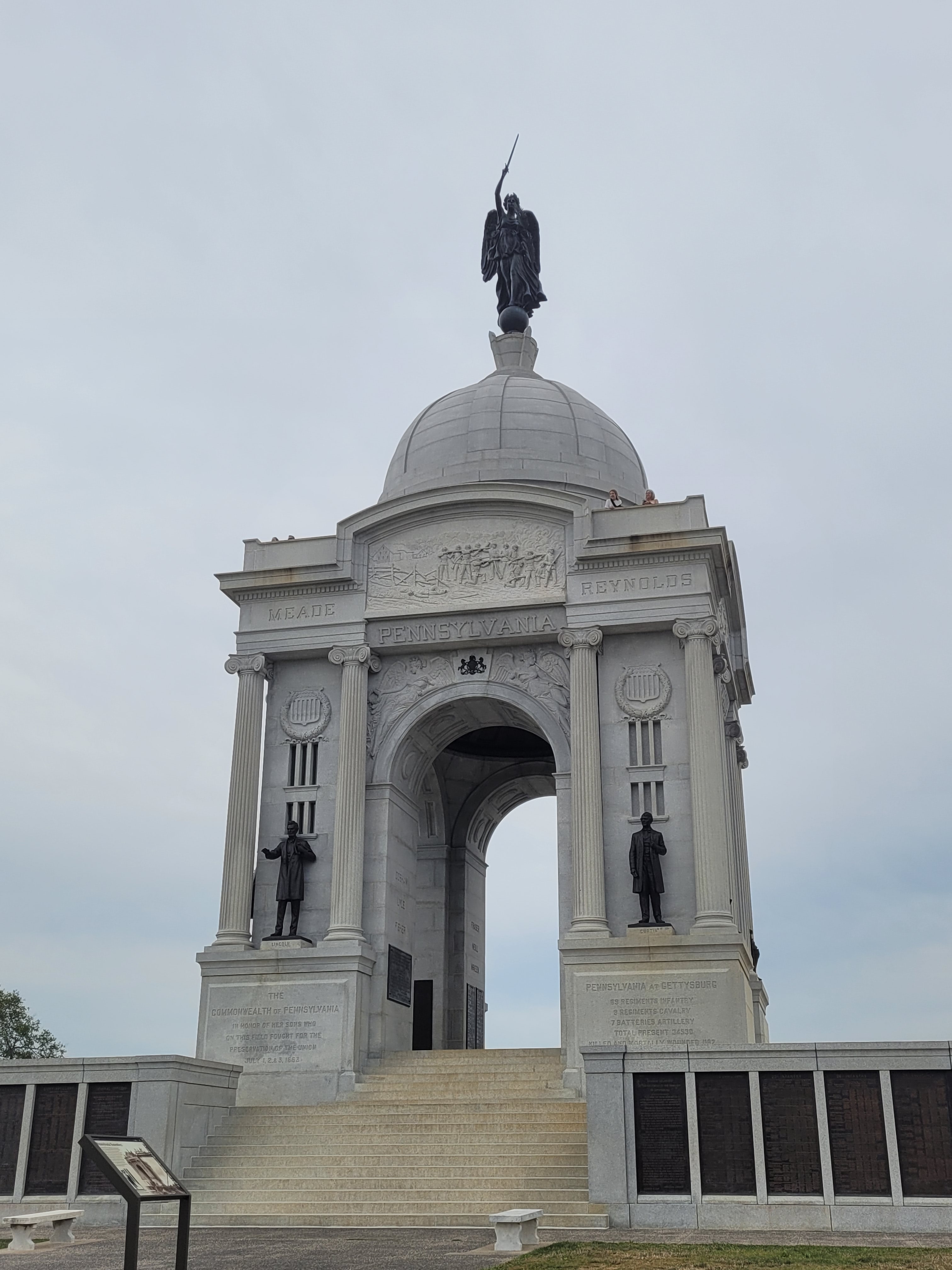 Right after opening, I entered the building, purchased tickets for one of the first bus tours, killed about 20 minutes in the gift shop, met the bus just outside the main walkway, and headed off. The guide was extremely knowledgeable and recounted in amazing detail the short-lived, yet single bloodiest battle from the American Civil War. The highlight of the tour was the stop at Big Round Top. There are many monuments to see in that area, including the statue of General Warren. The only drawback was that the bus only made a few short stops.