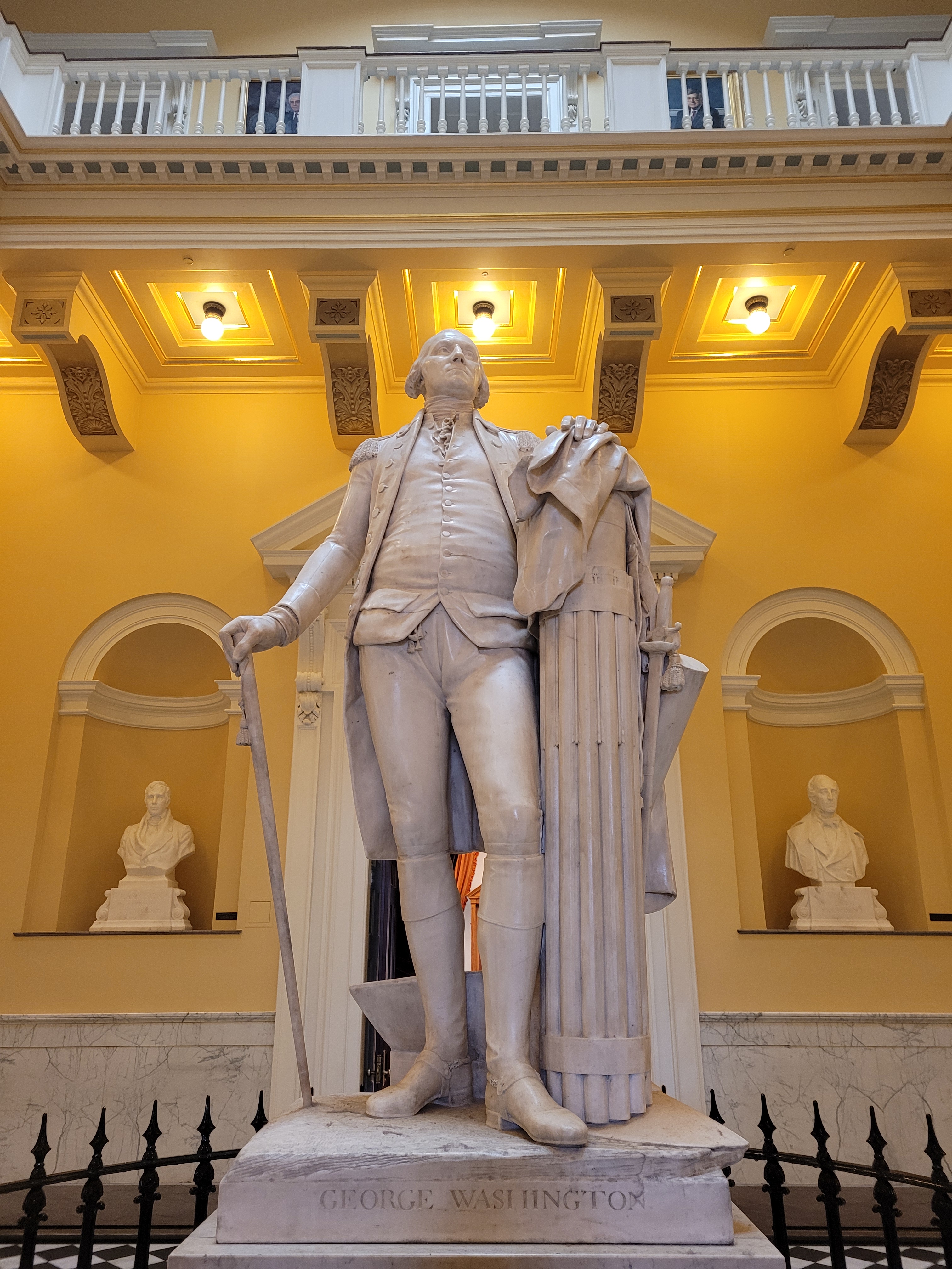 As with many capitol buildings, especially the ones that date back very far in the country’s history, this building was adorned with icons and metaphors. This statue of George Washington in the Richmond rotunda was created from a live mask and actual measurements of George himself. It is considered to be an exact match of how he looked, which is why it has been copied often throughout history.