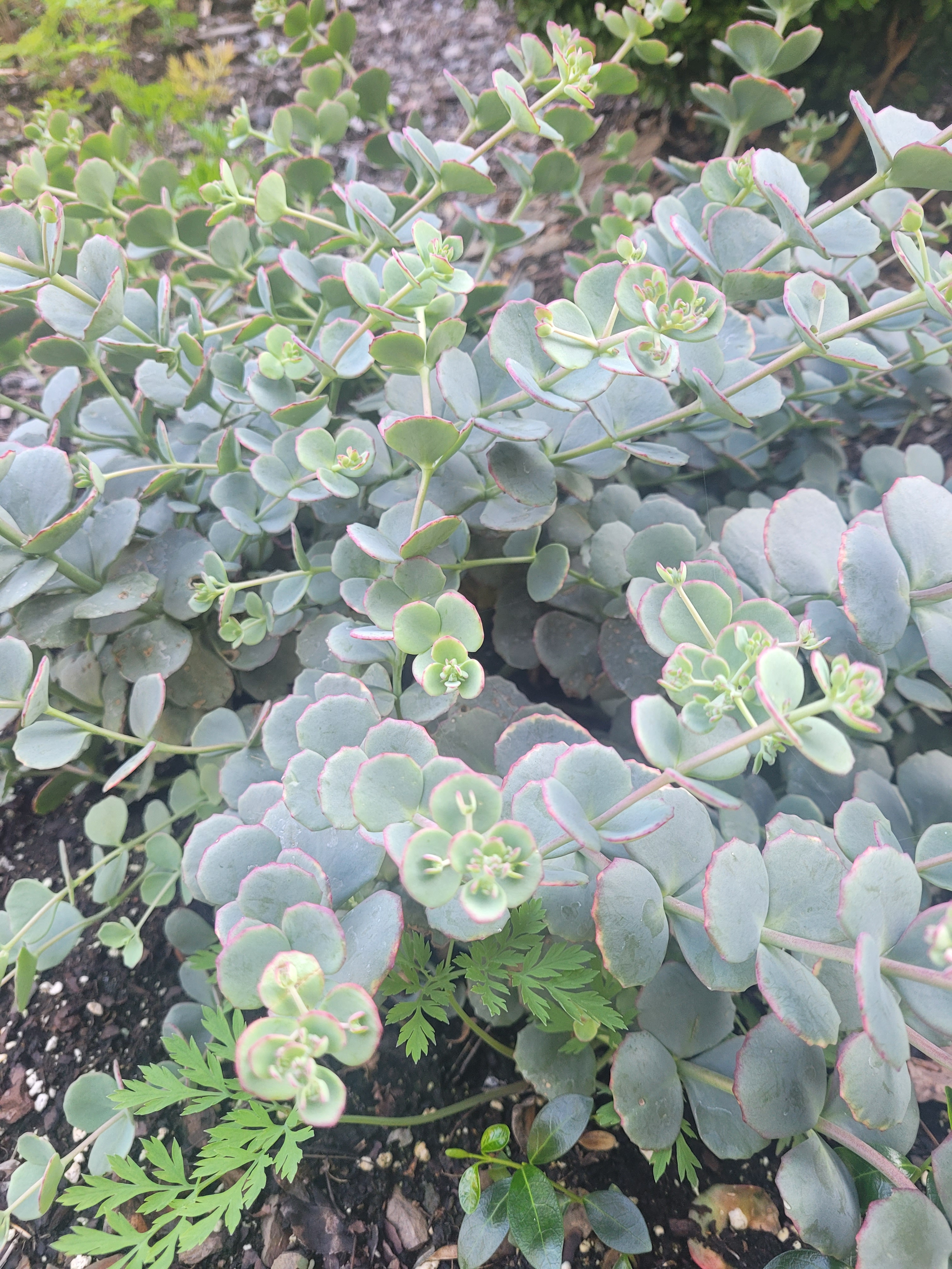 Stonecrop was so interesting we had to buy one. The leaves are thick and waxy, just like a succulent. As we head into fall, pink foliage and flowers are supposed to appear, adding more color to the yard! This plant is growing steadily and will reach 12 inches tall once mature.