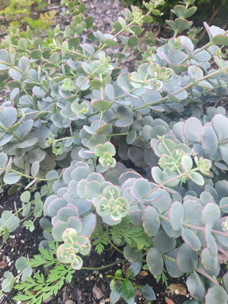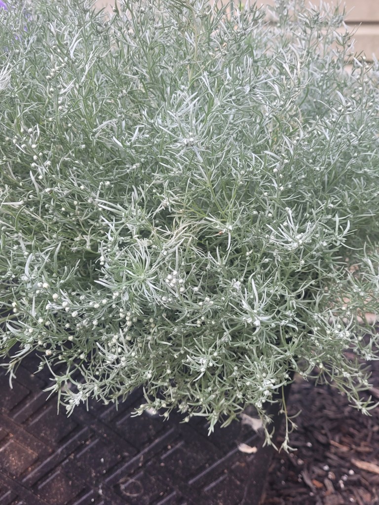 Silver Mound is not only silvery green but fluffy and soft. This little starter plant blew up! I did not read the tag stating it grows to 10-14 inches tall. This flopped over a bit as I put it in a planter pot instead of the ground. Either way, it’s still beautiful!
