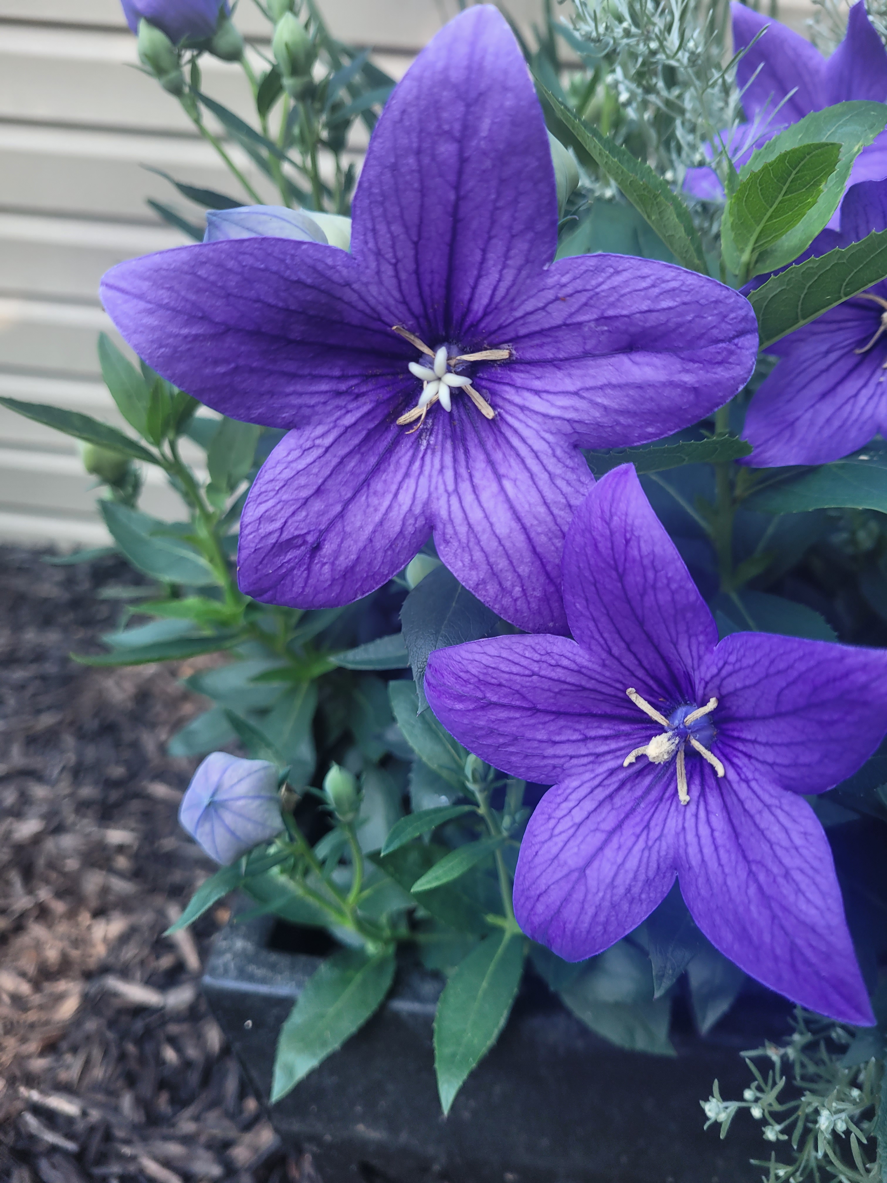 The Pop Star Blue Balloon Flowers are doing quite well. Although these flowers appear more purple than blue, they are quite interesting. Blooming in the early summer, these pods do look light blue just before they pop open. One plant produces many pods and it is beautiful to see.