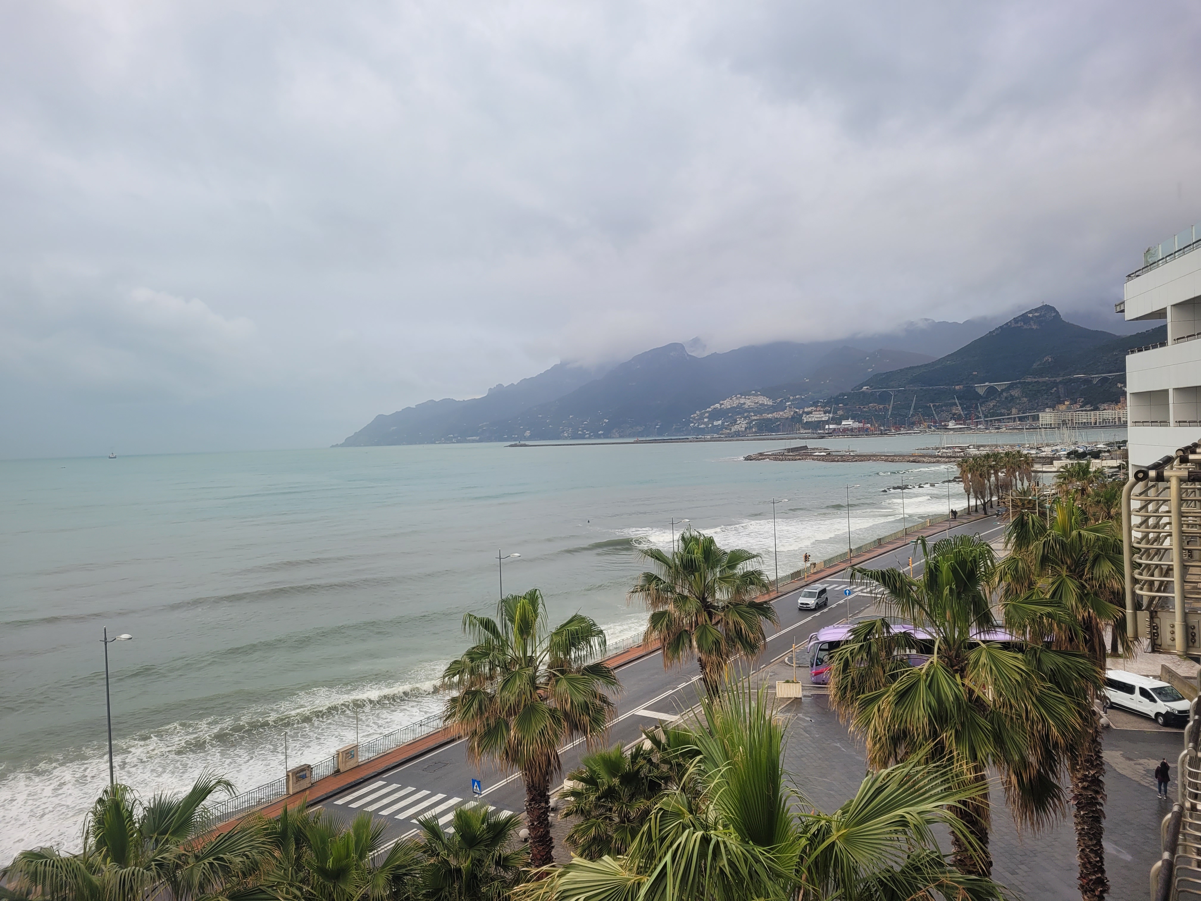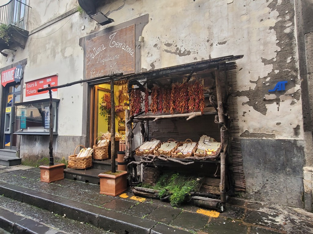 We saw citrus trees everywhere and spotted baskets of Ponderosa lemons everywhere, which are as big as your face! After some shopping and sightseeing, we reconnected with our bus and headed to Salerno for the night. It was dark when we arrived, so we didn’t see the amazing hotel view until the next morning at sunrise after a glorious night’s sleep.