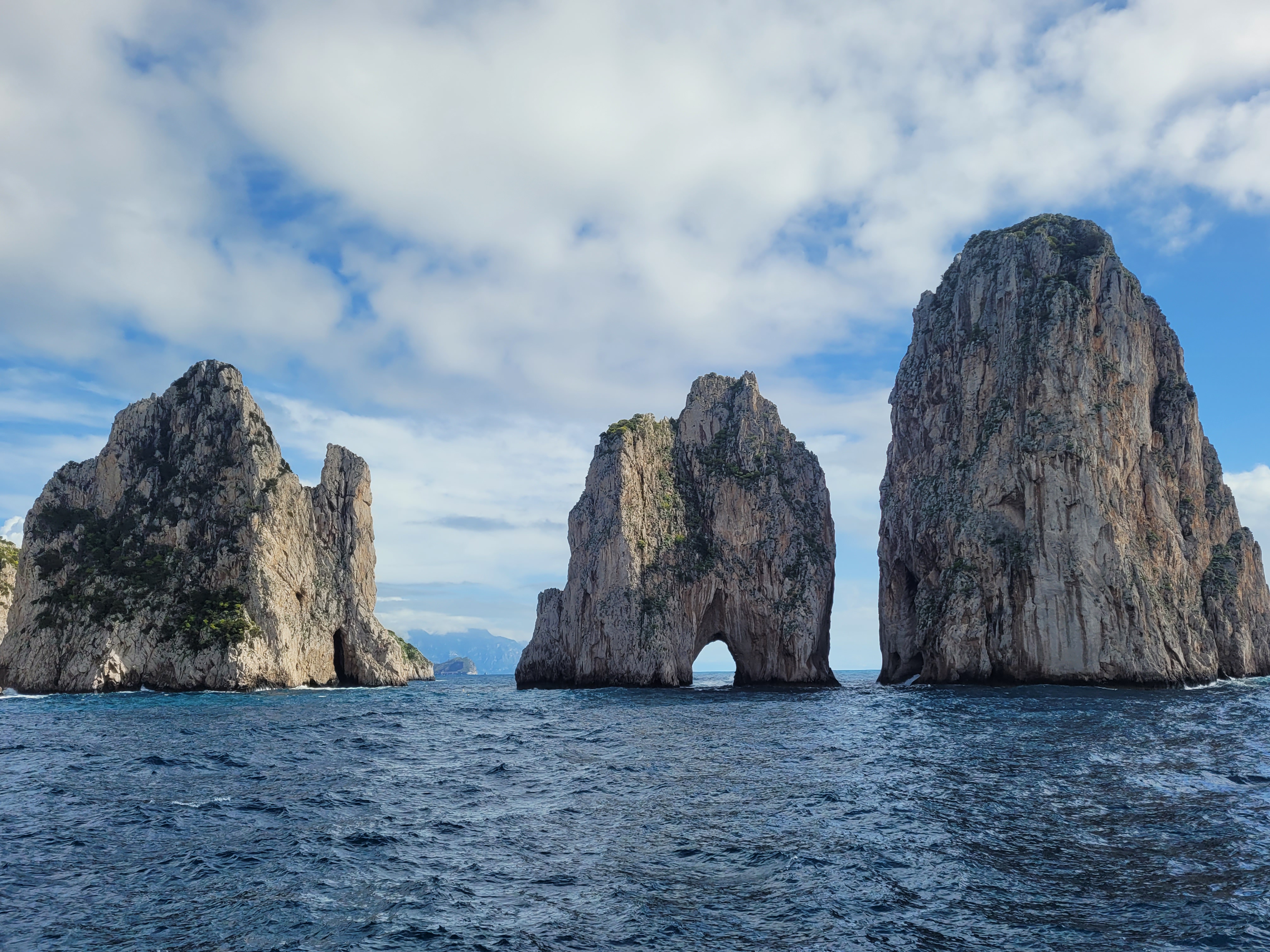 Around the last corner, we saw the famous set of three rocks captured in every painting of Capri. Seeing this view from the water with the sun shining was worth the effort to get there!