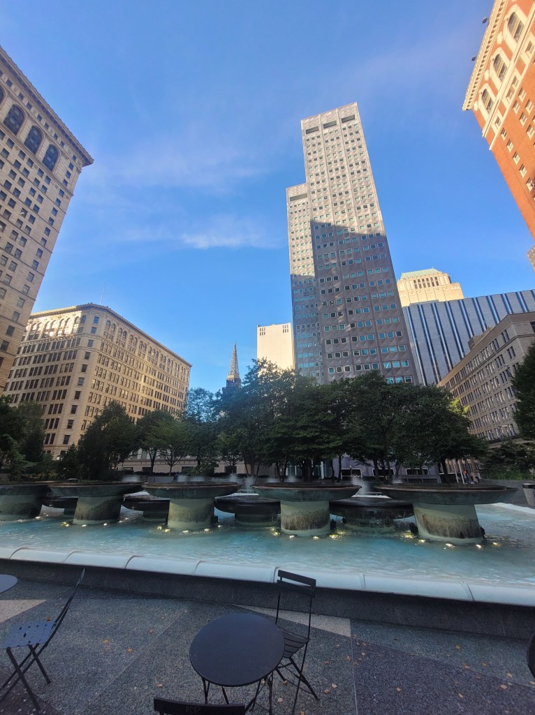 One area I had never explored before was Point State Park. My hotel window offered a great view, and I had a few chances to explore on foot during my stay. After viewing the Point, I saw the beautiful waterfall and color-changing lights at the bottom of the convention center. Pittsburgh may feel like a small city, but I had lots to do, see, and experience for a few days.