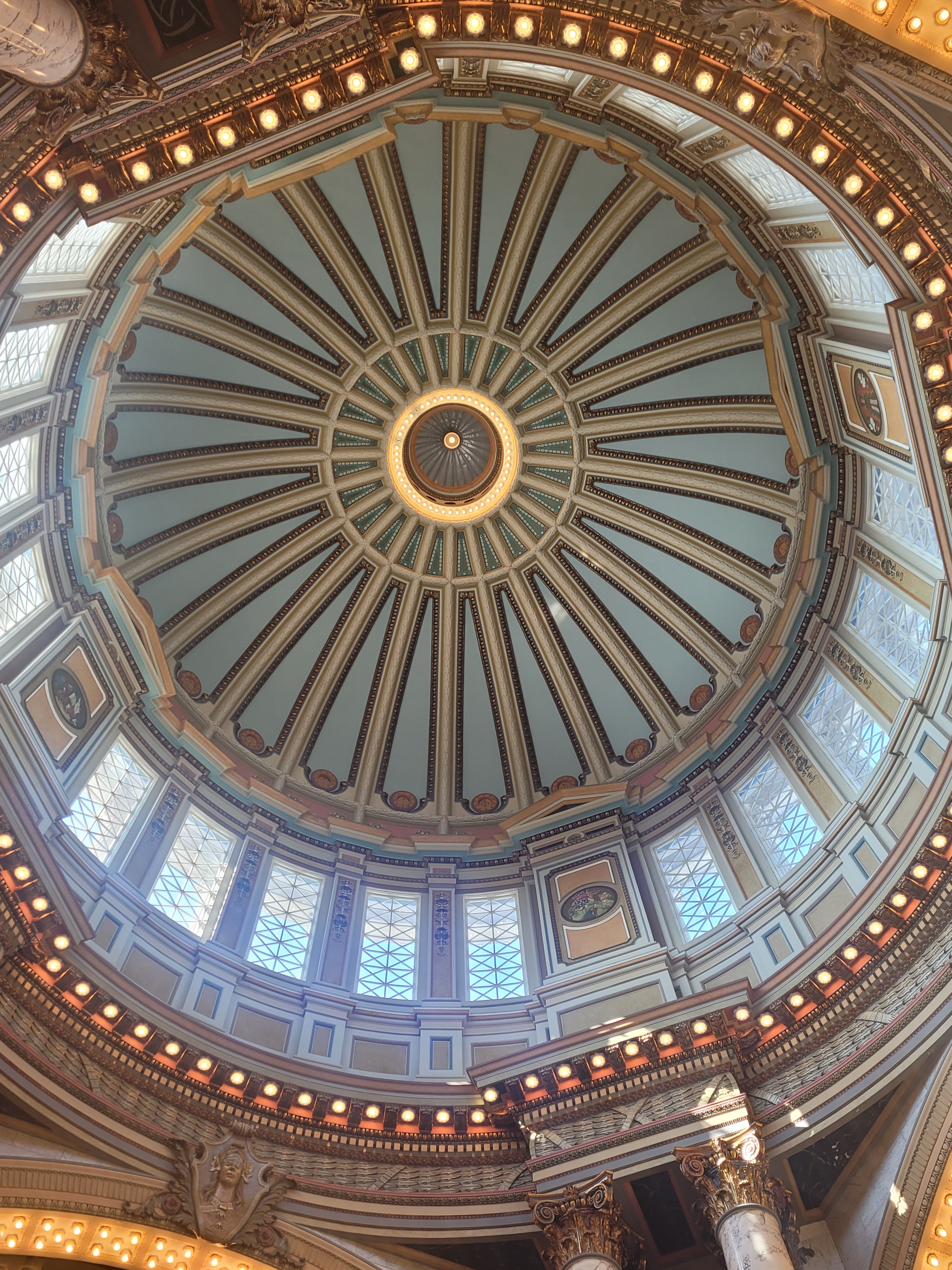 The center of the building offered beautiful views of a colorful dome. I learned the color was added later and not original to the building. Apparently, the color was added sometime later and was beautifully done.
