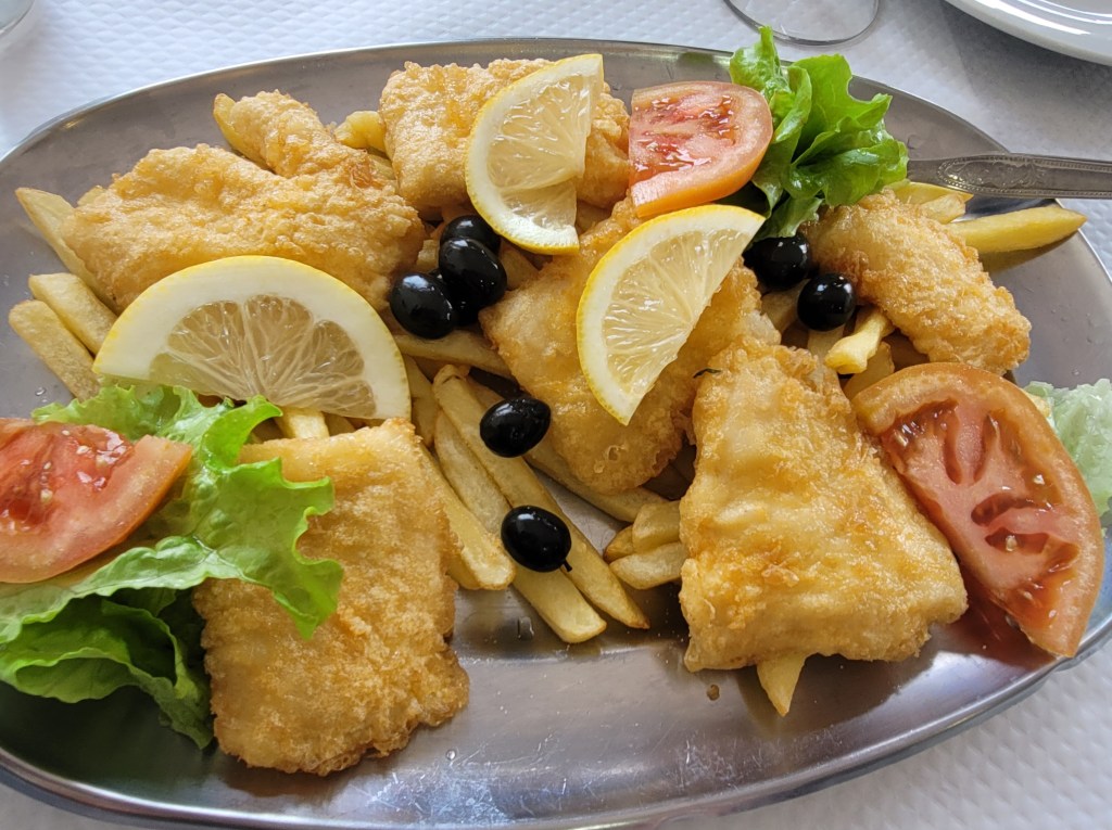 Less than 30 minutes southeast of Braga lies Guimaraes, the last stop of our day-trip. Our guide arranged a local lunch including green (young) wine, cod fish croquettes, fried cod fillets, roasted chicken and pork, and multiple local desserts. My favorite was a yellow squash pie, which was simply delicious.